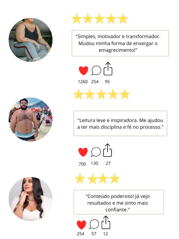 “Eu estava preso na luta contra a comida, achando que era fraco. Até que em um momento de total sinceridade com Deus, desabafei minha dificuldade e clamei por ajuda. Naquele instante, a Graça me alcançou. Perdi muitos kilos sem me focar em proibições, mas sim em conexão. Este livro é a prova viva de que a solução para o seu peso está na sua fé.”